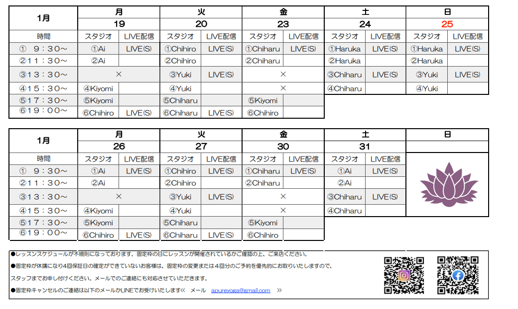 スタジオレッスン予約 レッスン予約 | ヨガスタジオアピュアー (yoga-apure.com)