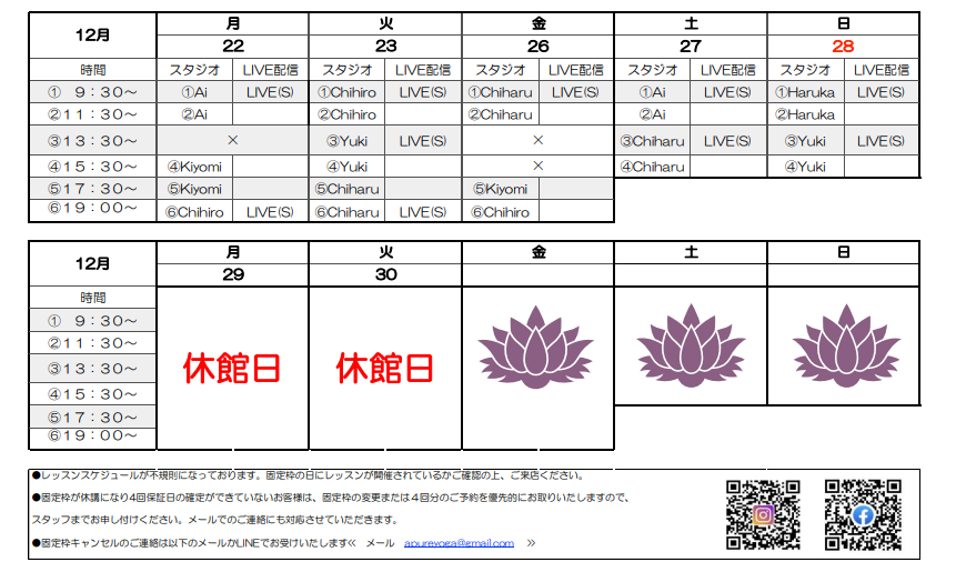 スタジオレッスン予約 レッスン予約 | ヨガスタジオアピュアー (yoga-apure.com)